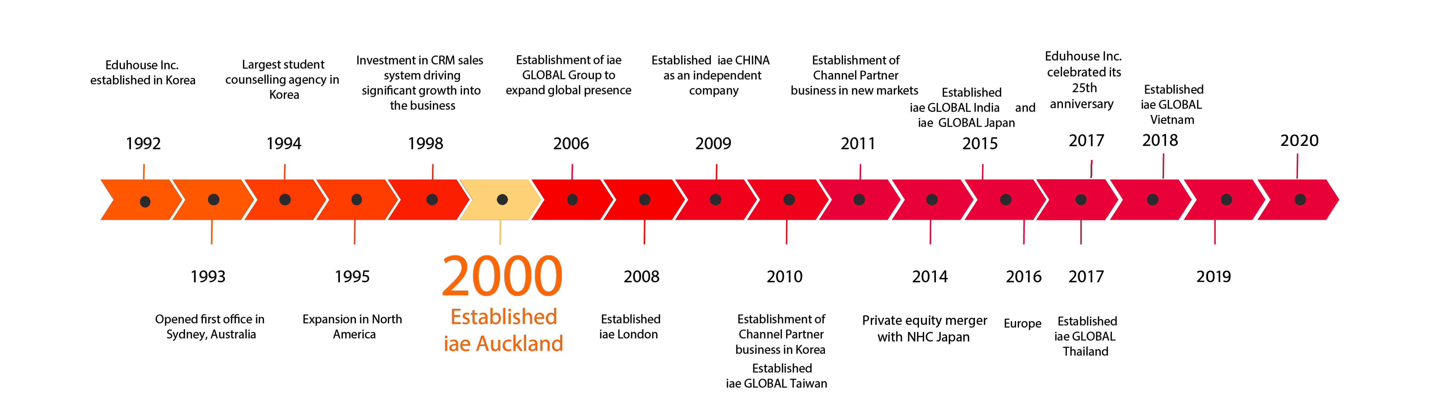 iae GLOBAL is one of the world’s leading international education recruitment and management consultancies. The network has more than 60 offices in China, Hong Kong, India, Japan, Korea, Nepal, Saudi Arabia, Taiwan, Thailand and Vietnam. These are supported by offices in Australia, Canada, New Zealand, the UK and the US. Established in Seoul, South Korea in 1992, the company has seen significant growth and is now the benchmark for student recruitment in the international education industry. With partner institutions in Australia, Canada, China, Ireland, Japan, Malta, New Zealand, the Philippines, Switzerland, the UK, the US and mainland Europe, iae GLOBAL’s 700 highly trained staff have helped more than 400,000 students find the right course. We also work closely with our institutional partners to provide marketing, promotional and business development support. iae GLOBAL continues to build on its dynamic vision, establish new international offices and expand its global recruitment network through strategic partnerships, to help provide greater student diversity and volume for our institutional partners.